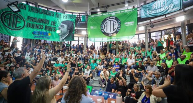 “Trabajar más y por menos plata para abaratar los costos del saqueo. Sin huelga y movilización no la frenamos”, sostuvo Rodolfo Aguiar, secretario general de ATE, quien definió el pacto con Washington como “un boleto de compraventa” del país.