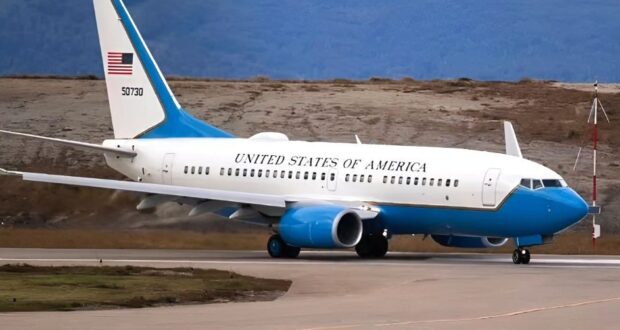 Según se desprende de información tomada de portales de seguimiento satelital, el avión despegó de la Base Conjunta Andrews, en Maryland, Estados Unidos, el jueves 22 de enero, el mismo día de la intervención del puerto de Ushuaia. El viernes 23 hizo una parada de más de dos horas en San Juan de Puerto Rico. Desde allá voló directamente hasta el Aeroparque Jorge Newbery de Buenos Aires, al que llegó en la mañana del sábado. Fue la última escala antes de partir hacia Ushuaia este domingo por la mañana.